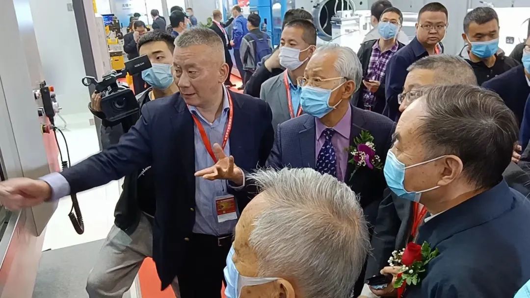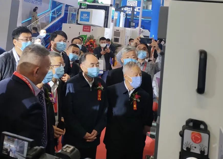 上午10時(shí),中國機(jī)床工具工業(yè)協(xié)會(huì)執(zhí)行副理事長兼秘書長王黎明、中國機(jī)床工具工業(yè)協(xié)會(huì)監(jiān)事長王旭陪同原教育部部長、中國工程院院長周濟(jì),原機(jī)械工業(yè)部副部長、國務(wù)院派駐國有重點(diǎn)大型企業(yè)監(jiān)事會(huì)原主席賈成炳等一行來到杭機(jī)展臺(tái)前,杭機(jī)股份董事長孫益民、總經(jīng)理董凱夫向各位貴賓匯報(bào)了杭機(jī)在解決航發(fā)葉片加工等卡脖子問題上取得的成果,目前這一成果已批量提供給航發(fā)用戶。周濟(jì)院長長期致力于機(jī)械設(shè)計(jì)、數(shù)控技術(shù)與智能制造的教學(xué)和研究工作,作為行業(yè)的專家,他耐心詢問杭機(jī)的發(fā)展現(xiàn)狀和產(chǎn)品結(jié)構(gòu)。賈副部長饒有興致地走近五軸數(shù)控強(qiáng)力成型磨床,近距離觀察機(jī)床內(nèi)部結(jié)構(gòu),孫益民董事長和董凱夫總經(jīng)理向幾位領(lǐng)導(dǎo)介紹了兩臺(tái)展品的適用范圍和產(chǎn)品性能,以及杭機(jī)目前參與的國家04專項(xiàng)的進(jìn)展情況,幾位貴賓勉勵(lì)杭機(jī)要投入更多精力到產(chǎn)品研發(fā)上,承擔(dān)起為國內(nèi)航空航天、高精度數(shù)控機(jī)床功能部件及能源裝備中的關(guān)鍵零部件的高精、高效加工的企業(yè)責(zé)任。